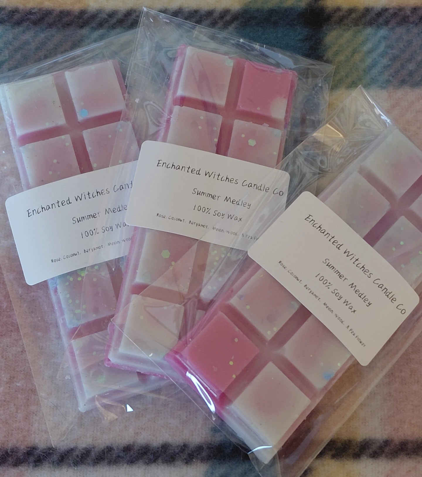 Bright, tropical, and softly floral, our Summer Medley Wax Bar is hand-poured with 100% soy wax and crafted to capture the beauty of sun-filled days and warm evening breezes. This balanced blend combines delicate florals, creamy coconut, juicy melon, and grounding wood for a scent that feels both fresh and comforting.
